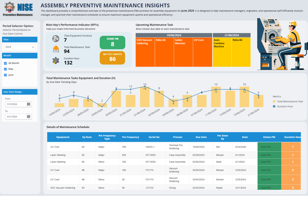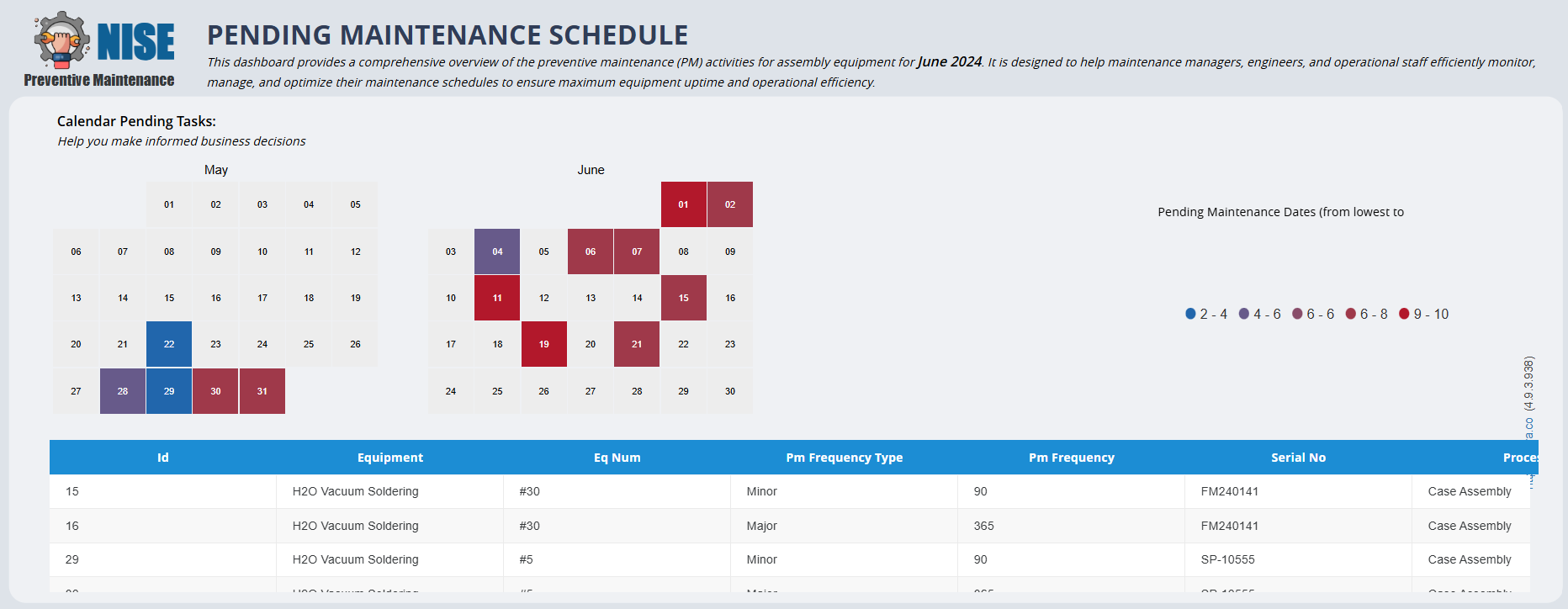 Provides a comprehensive insights of the preventive maintenance activities, schedules of maintenance tasks, equipment performance, and the overall health of systems. **Click the image to expand